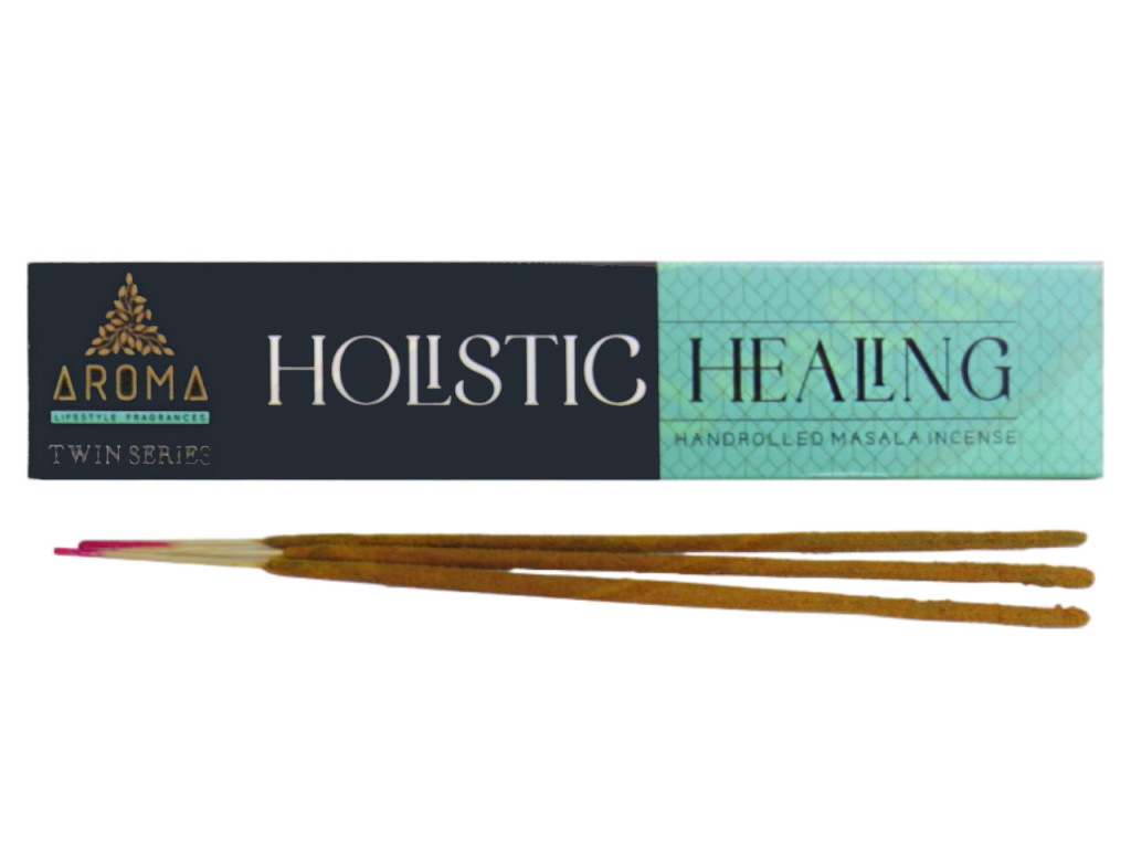 Az Aroma Holistic Healing füstölő prémium minőségű, kézzel sodort masala füstölő, amely harmonikus illatával segít megteremteni a nyugalmat és a testi-lelki egyensúlyt. A 15 g-os kiszerelés ideális választás meditációhoz, relaxációhoz vagy a helyiség kellemes illatosításához.