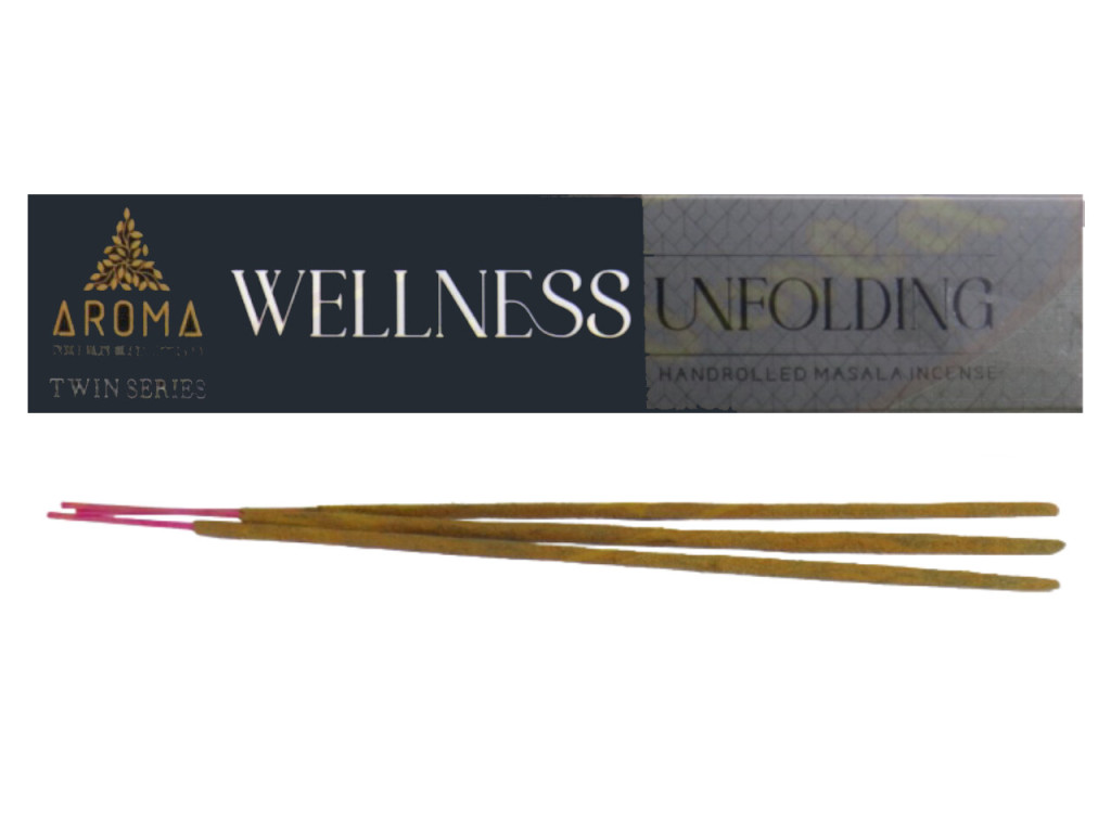 Az Aroma Wellness Unfolding füstölő prémium minőségű, kézzel sodort masala füstölő, amely segít megteremteni a nyugodt, kiegyensúlyozott légkört. A 15 g-os kiszerelés ideális választás relaxációhoz, meditációhoz és a mindennapi stressz oldásához.