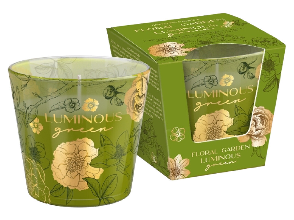 Kulcsszavak: Luminous Green gyertya, zöld illatgyertya, illatgyertya 115 g, dekorációs gyertya, virágos gyertya.