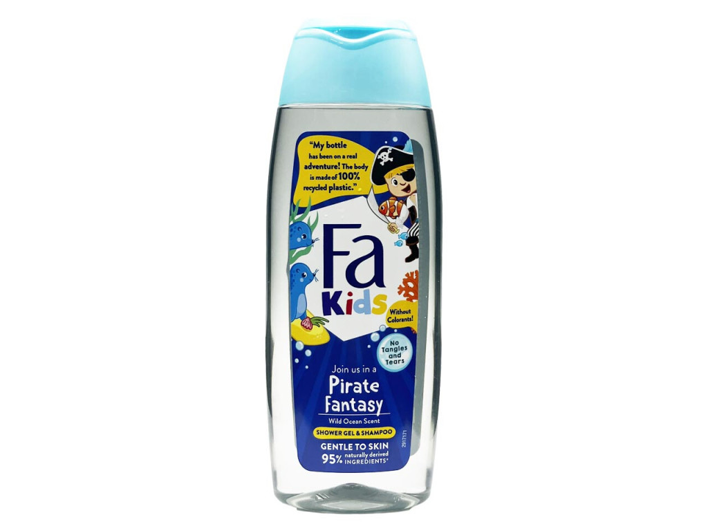 A Fa Kids Pirate Fantasy 2 az 1-ben tusfürdő és sampon kifejezetten gyermekek számára készült, hogy a fürdés élmény legyen, miközben gyengéden tisztítja a bőrt és a hajat.