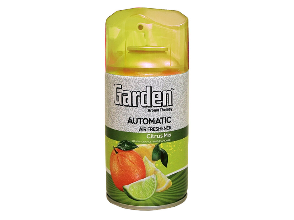 Frissítsd fel otthonod levegőjét egy energizáló citruskoktéllal! A Garden Citrus mix illatú automata légfrissítő utántöltő zamatos narancs, citrom és lime jegyeket egyesít, hogy minden fújás természetes lendületet és üdeséget adjon a levegőnek. "Aroma Therapy" formulájának köszönhetően nemcsak felfrissít, de segít javítani a közérzetet is.