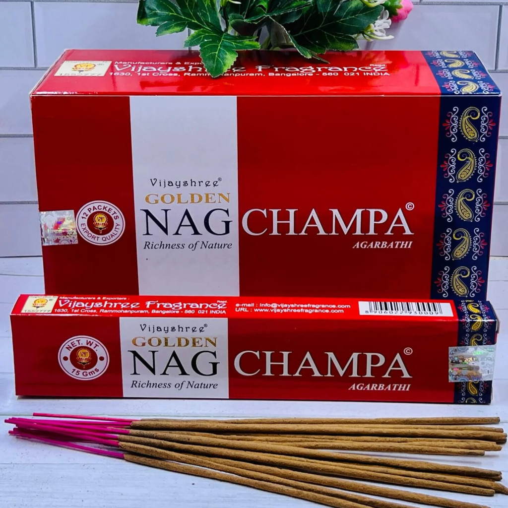 Kulcsszavak: Nag Champa füstölő, Vijayshree Golden Nag Champa, indiai füstölő 15 g, meditációs füstölő, keleti illat füstölő.