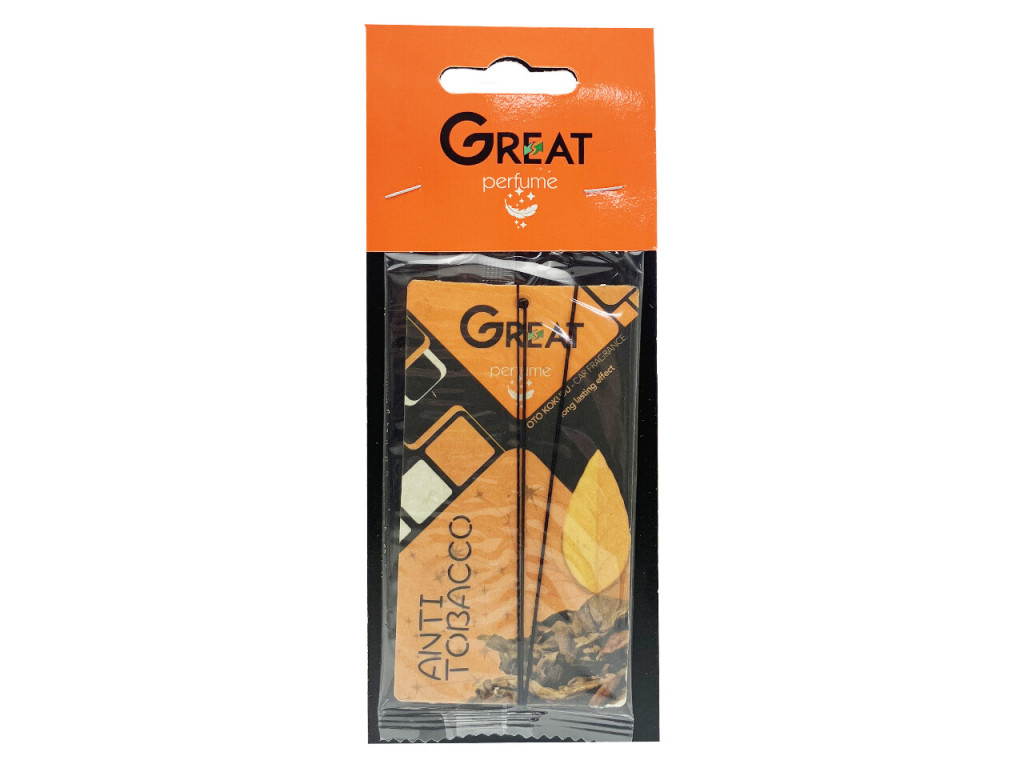 Frissítsd fel autód levegőjét a Great Anti Tobacco autóillatosítóval! Ez az intenzív illatosító hatékonyan semlegesíti a dohányszagot, és hosszan tartó frissességet biztosít az utastérben. Diszkrét megjelenésének köszönhetően bármilyen autóban stílusosan mutat.
