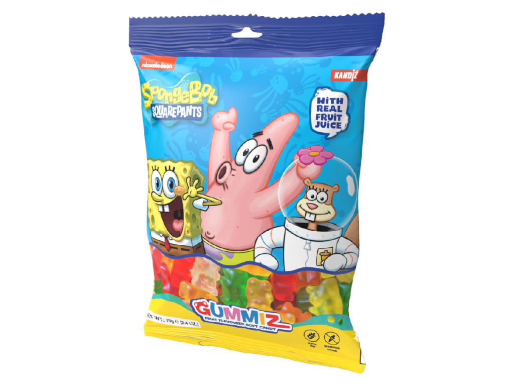Glükózszirup (45,568%), cukor (30,714%), pálmaolaj (11,642%), marhazselatin (8,571%), savanyúságot szabályozó anyag: citromsav (1,642%), gyümölcslé koncentrátum: alma, fekete répa (1,200%), fényezőanyagok: karnaubaviasz, méhviasz (0,320%), aromák: málna, eper, alma, citrom, narancs, ananász (0,171%), színezékek: kurkumin, paprika kivonat, klorofillok és klorofillinek rézkomplexei (0,142%), spirulina kivonat (0,030%).