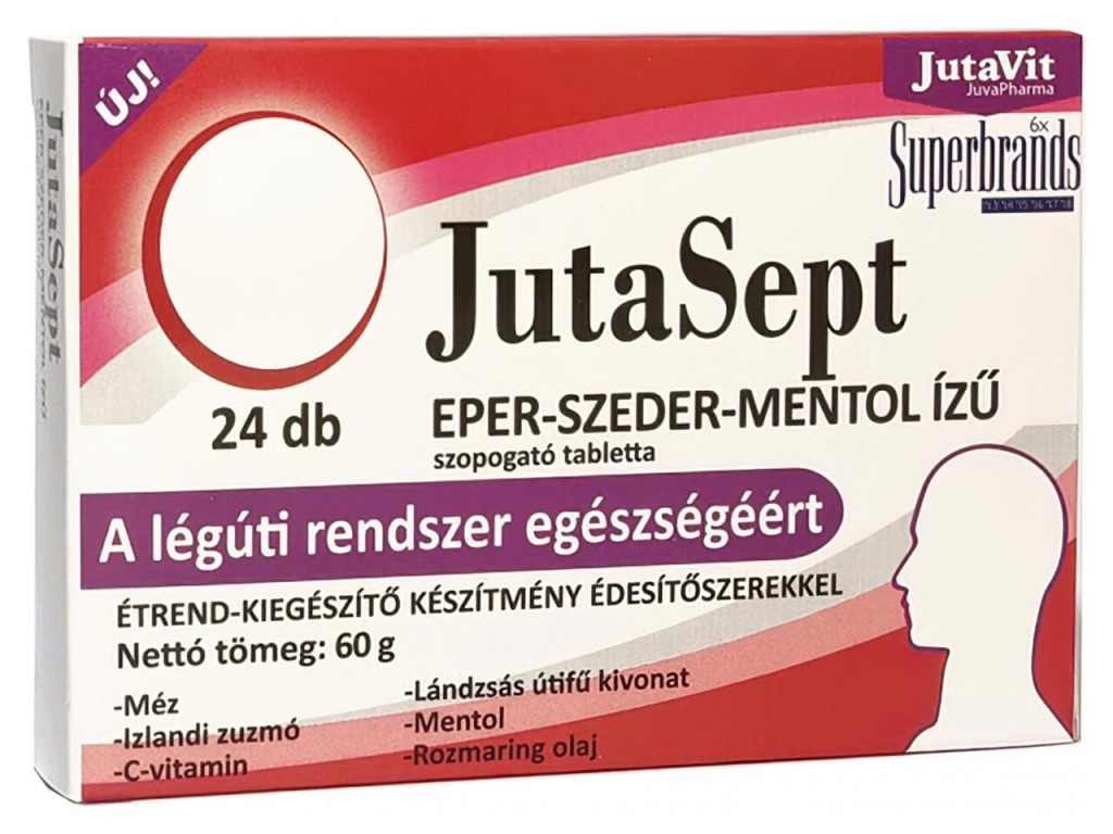 Összetevők: édesítőszerek (izomalt, xilit, szukralóz), izlandi zuzmó kivonat, méz, L-aszkorbinsav, savanyúságot szabályzó (citromsav), lándzsás útifű kivonat, aroma (eper, szeder), színezék (fekete retek kivonat), mentol, rozmaringolajOGYÉI szám: 20672/2018