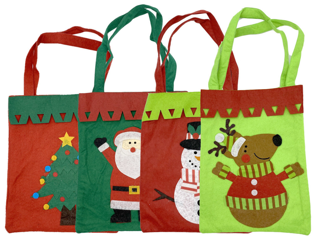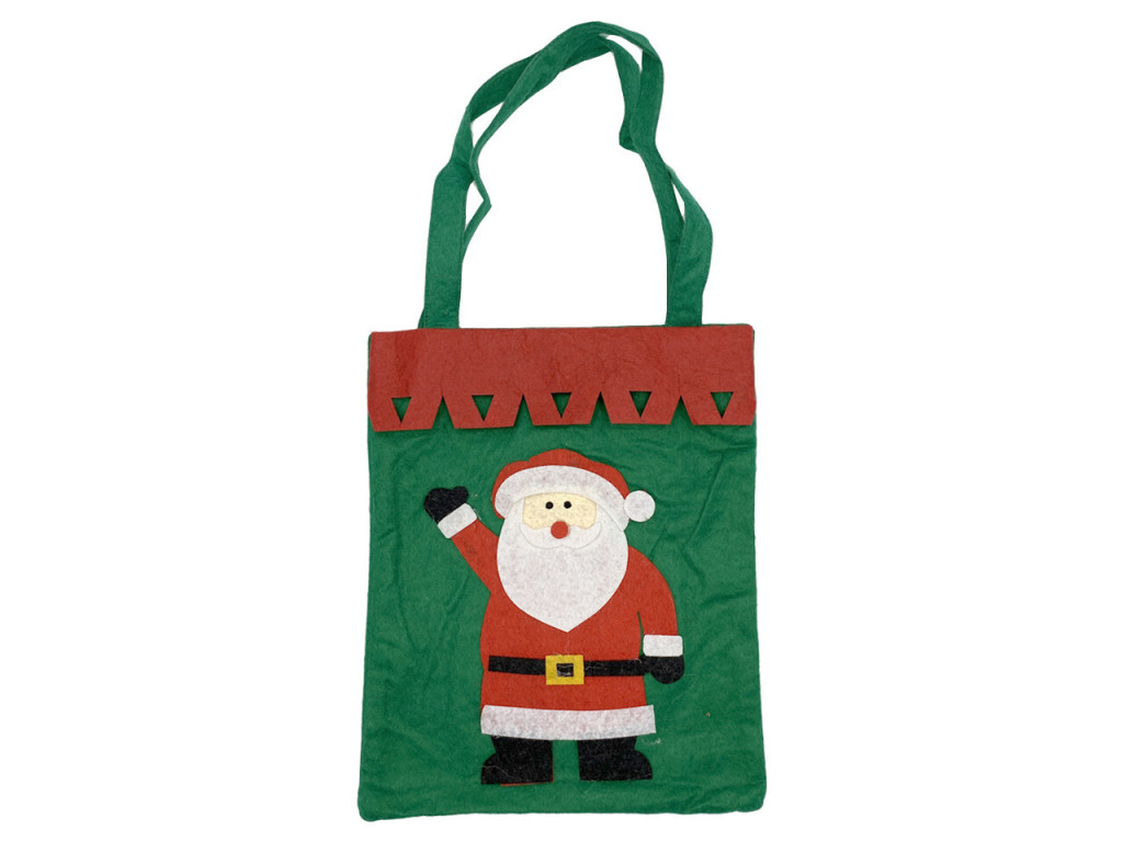 karácsonyi filc táska vidám és praktikus kiegészítő az ünnepi időszakra. Ideális ajándékcsomagoláshoz, kisebb meglepetések, édességek vagy ajándéktárgyak elhelyezéséhez. A strapabíró