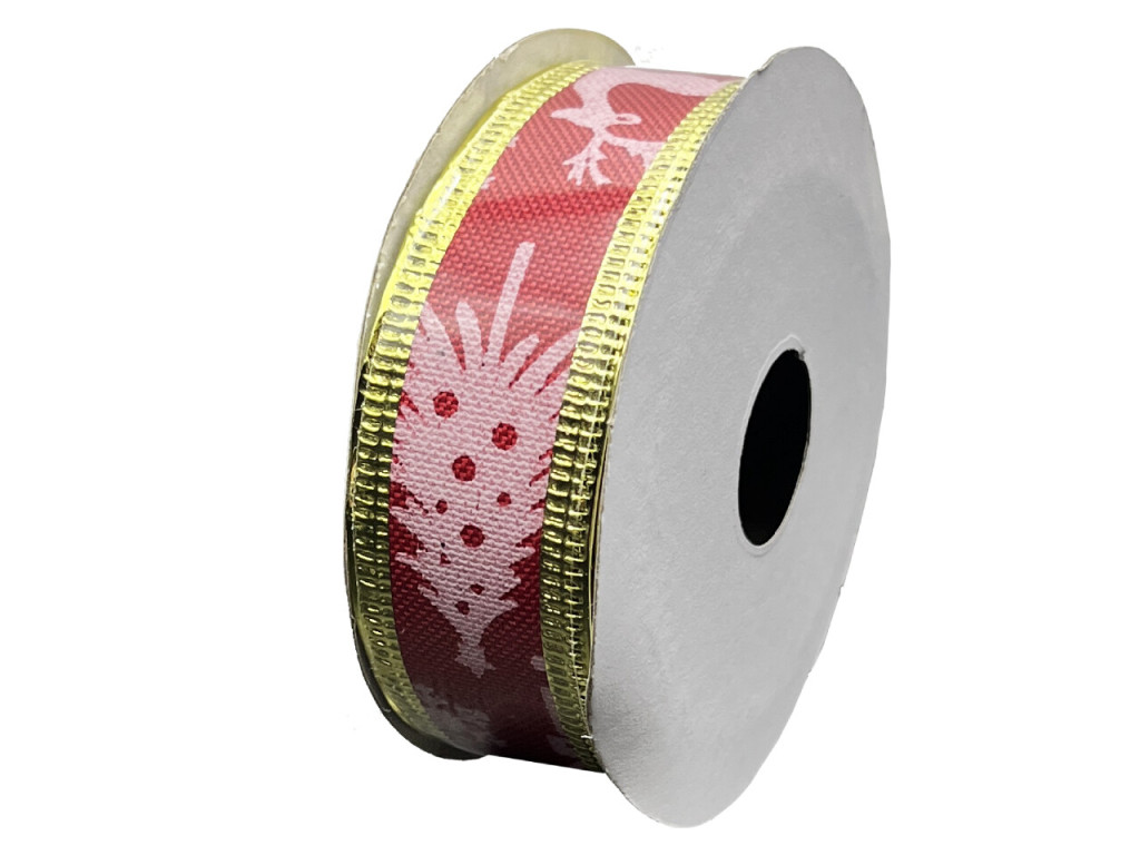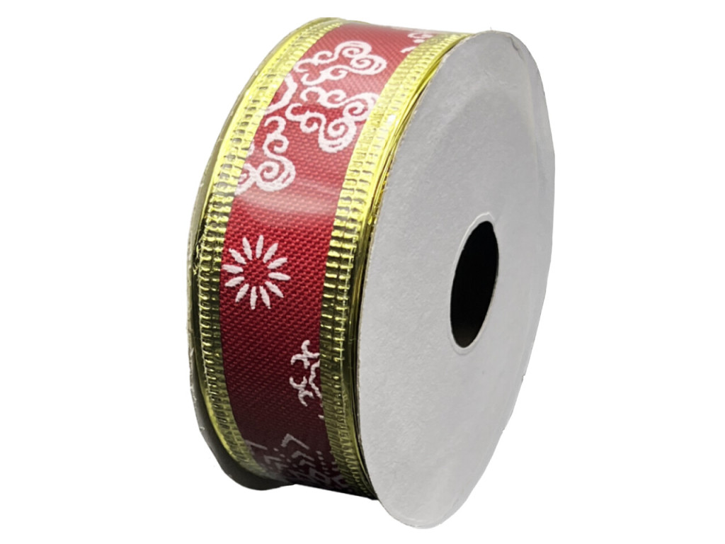 A bordó karácsonyi szalag klasszikus, ünnepi megjelenést biztosít bármilyen dekorációnak vagy ajándékcsomagolásnak. A mély bordó alap és a fehér karácsonyi minta harmonikus kontrasztot alkot, amit a fényes arany szegély még elegánsabbá tesz. A szalag poliészter anyagból készült, így tartós, formáját jól megtartja, és többször is felhasználható.