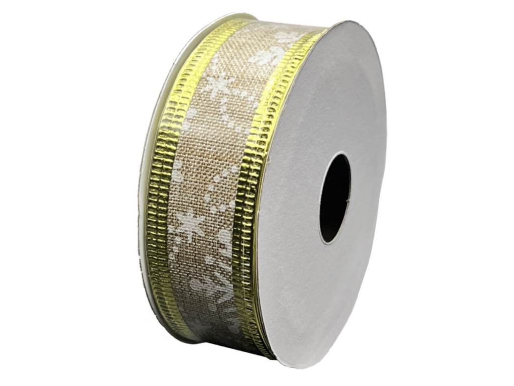 Natúr Karácsonyi Szalag – Fehér Mintás, Arany Szegéllyel