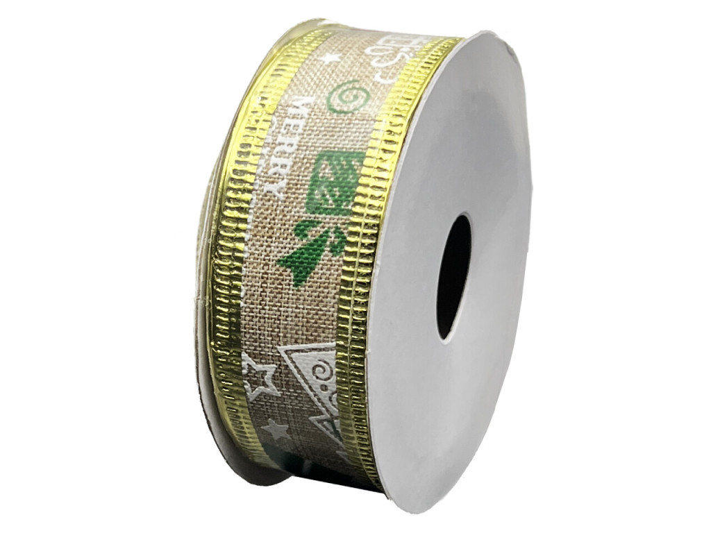 A natúr karácsonyi szalag elegáns és természetes hatású kiegészítő ünnepi dekorációkhoz, ajándékcsomagoláshoz és kézműves alkotásokhoz. A lenvászon hatású, poliészter anyagból készült szalagot finom fehér karácsonyi motívumok és fényes arany szegély díszíti, mely meleg, rusztikus hangulatot kölcsönöz minden ünnepi kompozíciónak.