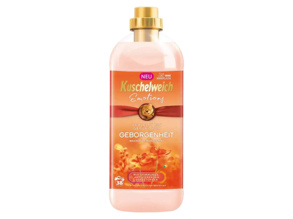 Kuschelweich Emotions Geborgenheit öblítőkoncentrátum különleges gondoskodást és meghitt, meleg illatélményt nyújt minden mosás után. A „Geborgenheit” (biztonság, meghittség) illatkompozíció gyengéd, hangulatjavító illatjegyekkel öleli körül a ruhákat, miközben hosszan tartó frissességet és puhaságot biztosít.