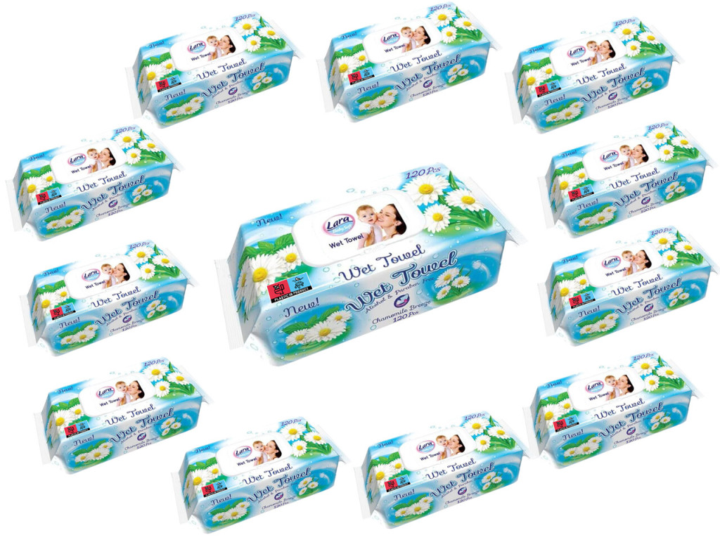 Lara nedves törlőkendő szett 12×120db - Kamilla illatú, fedeles
