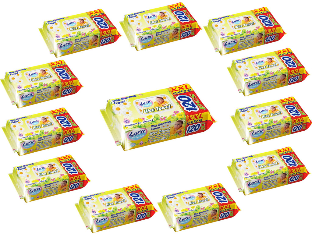 Lara nedves törlőkendő XXL szett 12×120db - Kamilla illatú, fedeles