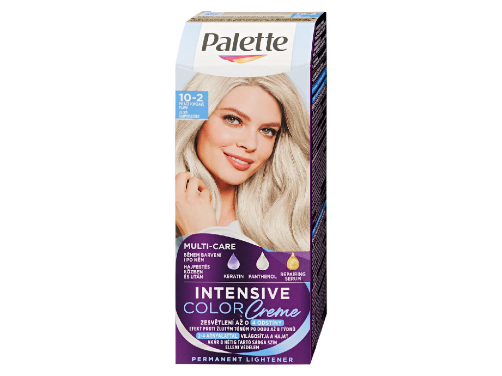 Kulcsszavak: Palette 10-2 hajfesték, ultra világosszõke hajfesték, Palette világosító hajfesték, szőke hajfesték világosító, Palette Intensive Color Creme 10-2.