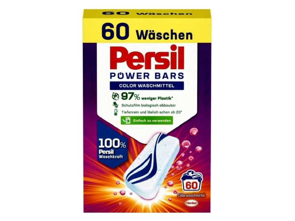 Persil Power Bars Color innovatív mosószer színes ruhákhoz, amely erőteljes tisztítóhatást és kényelmes használatot kínál. A praktikus mosószer rudak mélyen behatolnak a szövetek szálaiba, és már