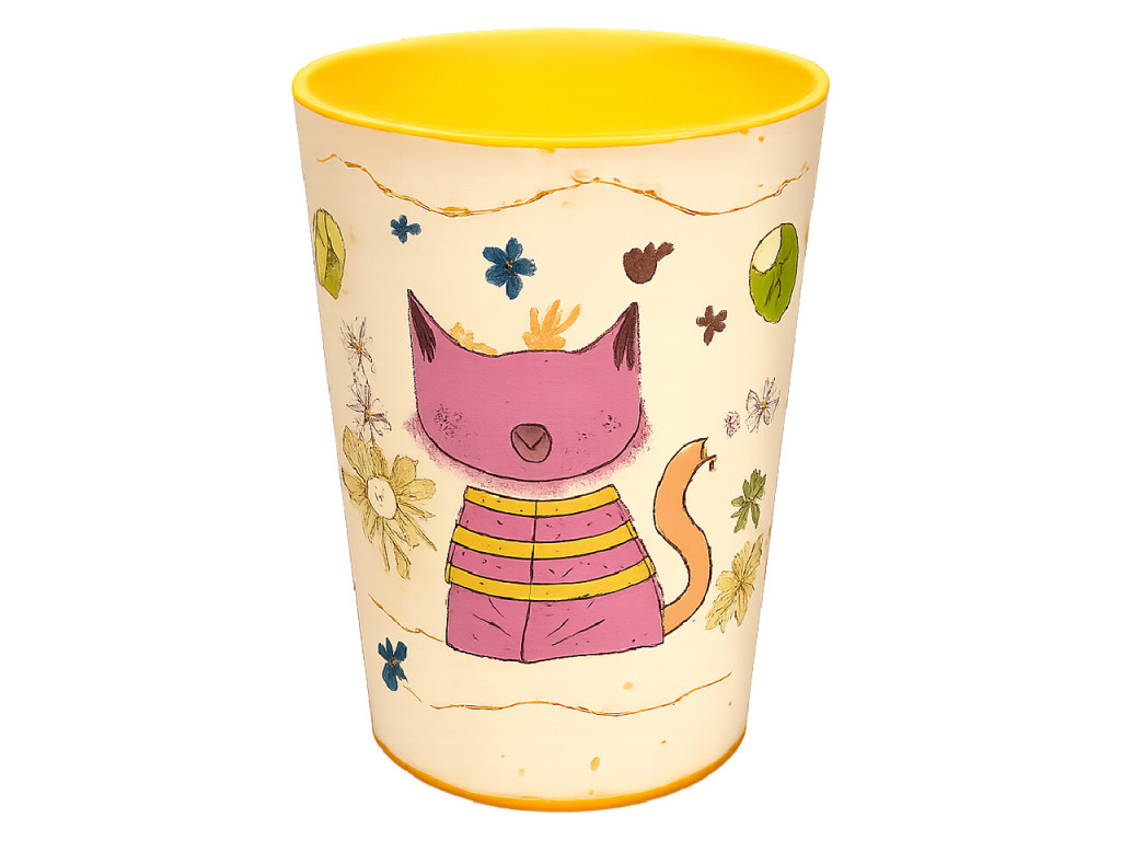 Dobd fel a mindennapi ivást egy vidám, színes és praktikus pohárral! Ez a 400 ml-es műanyag pohár kívül gyönyörű virág-, pillangó- és cica mintával díszített, belül pedig élénk neon sárga színnel ragyog – garantáltan jókedvre derít minden kortynál. Könnyű, tartós és bárhová magaddal viheted, így tökéletes választás otthonra, iskolába vagy akár utazáshoz is.