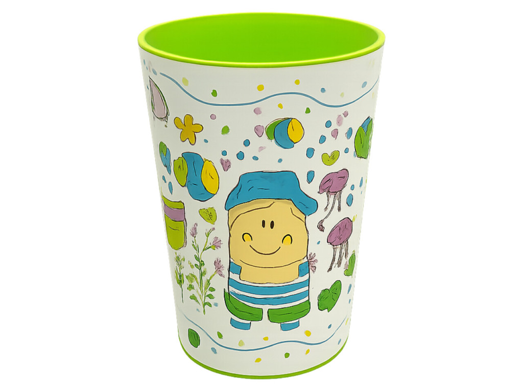 Fedezd fel a tenger hangulatát ezzel a vidám és praktikus 400 ml-es műanyag pohárral! Külső részén kedves tengeri minták — hal, medúza, papírhajó és egy aranyos kisfiú — díszelegnek, belül pedig élénk neon zöld szín teszi igazán frissé és különlegessé. Könnyű, tartós, és ideális választás mindennapi használatra, akár otthon, akár útközben.