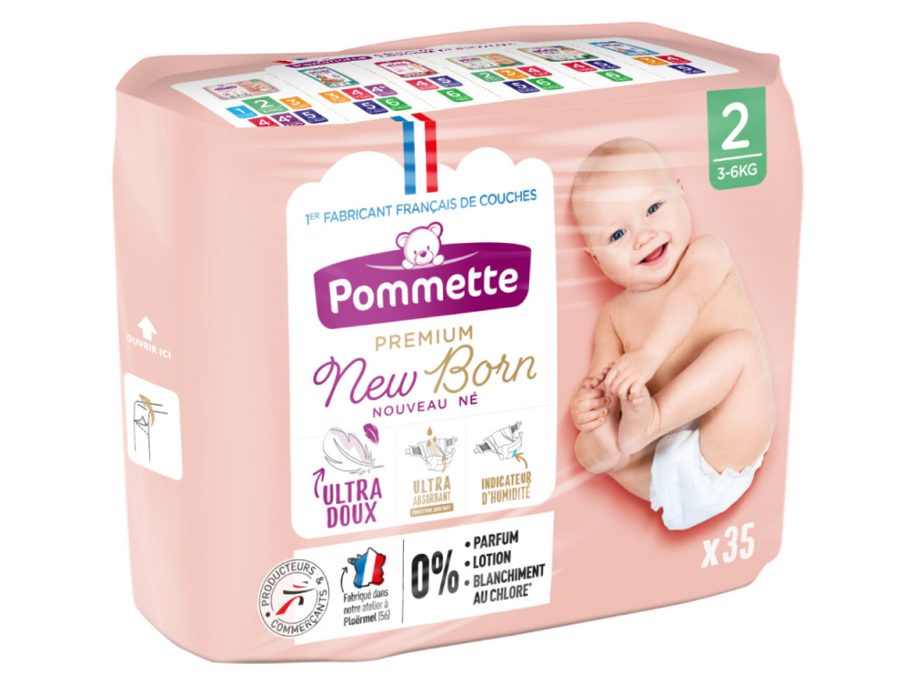 Kulcsszavak: Pommette pelenka 2, újszülött pelenka, Pommette New Born, 3–6 kg pelenka, babapelenka 35 db.