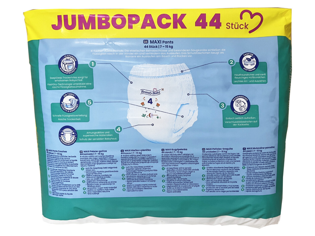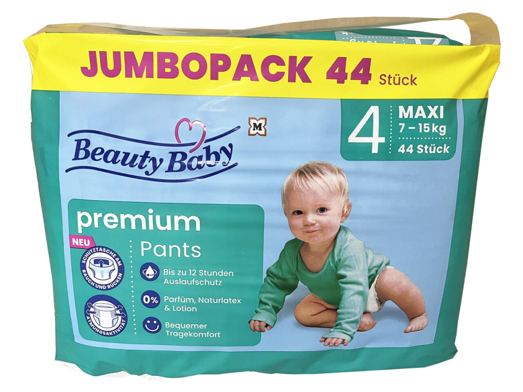 Tedd könnyebbé a mindennapokat a Beauty Baby megbízható minőségével – válaszd a Maxi 4-es méretű Premium Pants pelenkát!