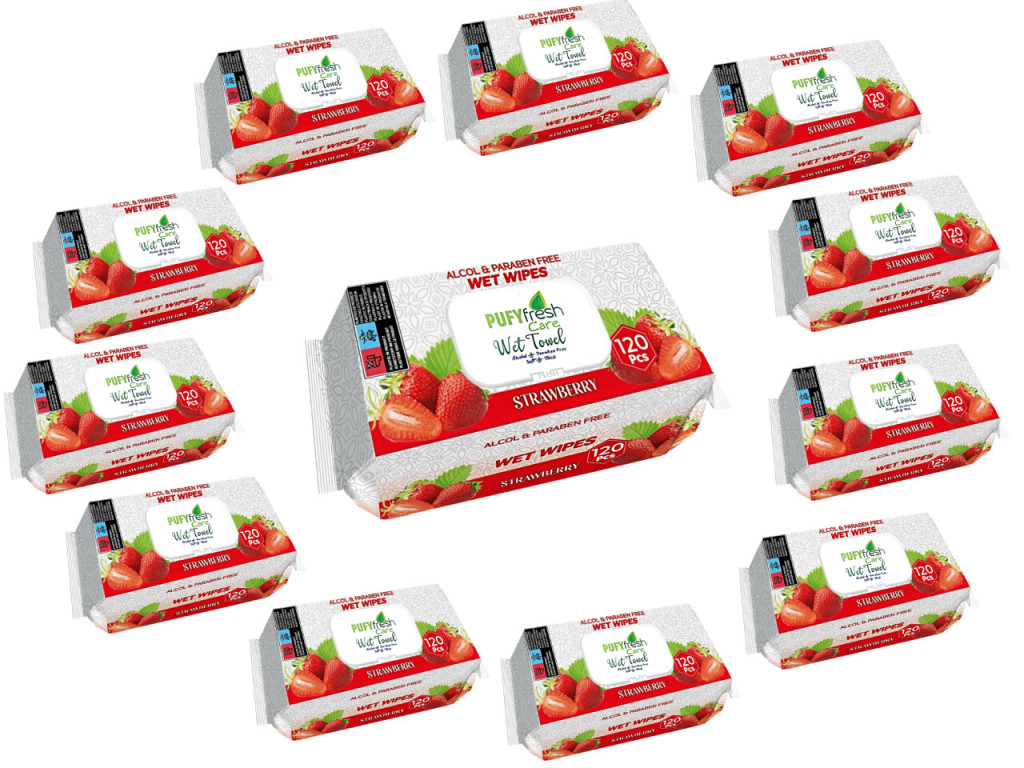 Pufy Fresh nedves törlőkendő 120db Fedeles - Eper (12 csomag)