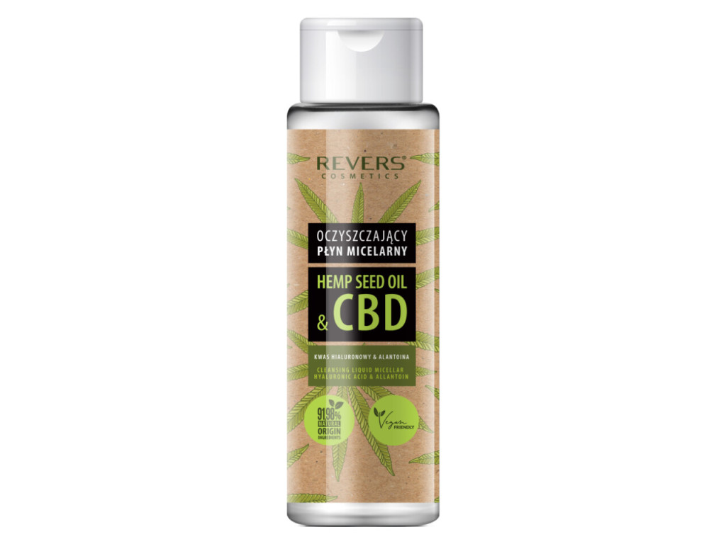 A Revers CBD micellás arctisztító hatékonyan távolítja el a sminket, a szennyeződéseket és a felesleges faggyút, miközben gyengéden ápolja a bőrt. A kendermagolaj és CBD, valamint a hialuronsav és allantoin kombinációja tisztít, hidratál és nyugtat egyetlen lépésben.