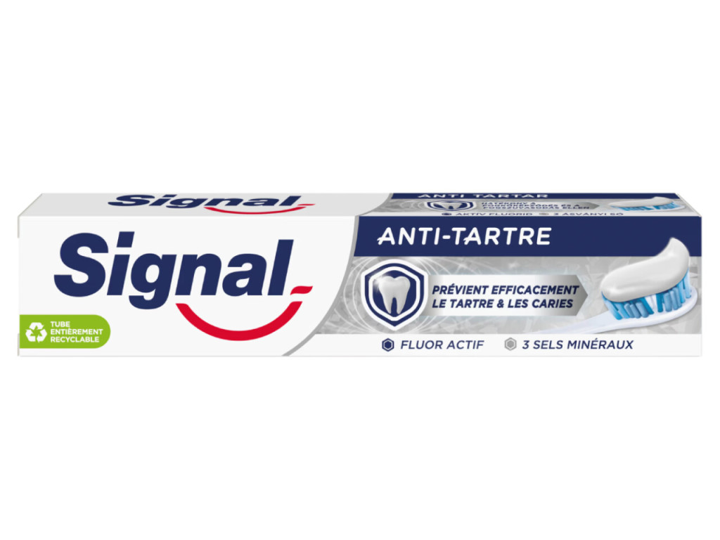 Signal Anti-Tartre fogkrém hatékony megoldást nyújt a fogkőképződés megelőzésére, miközben segít megőrizni a fogak és az íny egészségét. Aktív fluor tartalmának és ásványi összetevőinek köszönhetően hozzájárul a fogszuvasodás elleni védelemhez, valamint a mindennapi szájhigiénia fenntartásához.