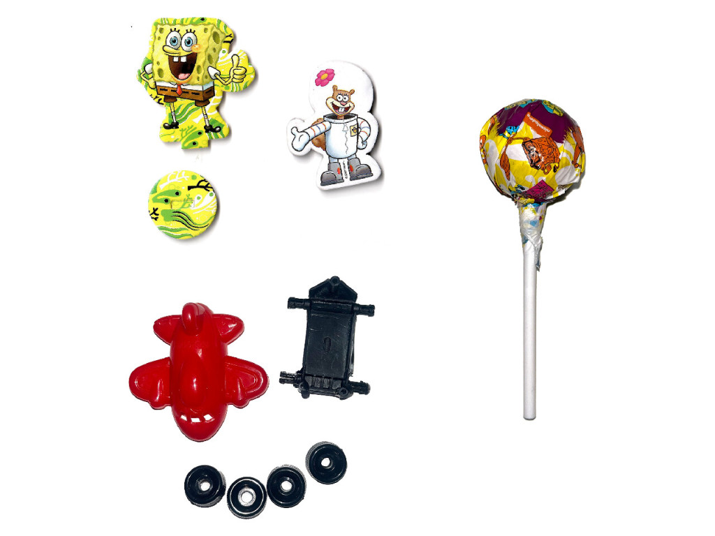 Cukor (73,152%), glükózszirup (16,592%), maltodextrin (4,200%), rágógumialap (3,226%), savanyúságot szabályozó anyagok: citromsav, almasav (2,565%), természetes aromák: eper, kóla, narancs (0,218%), nedvesítőszerek: glicerin (0,037%), antioxidáns: BHT (0,005%), színezékek: antocianinok, paprikakivonat, natúr karamell (0,005%).