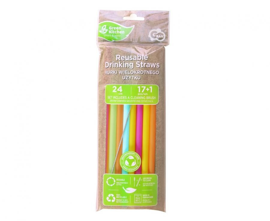Színes Colors műanyag újrafelhasználható szívószál 17 db-os + kefe