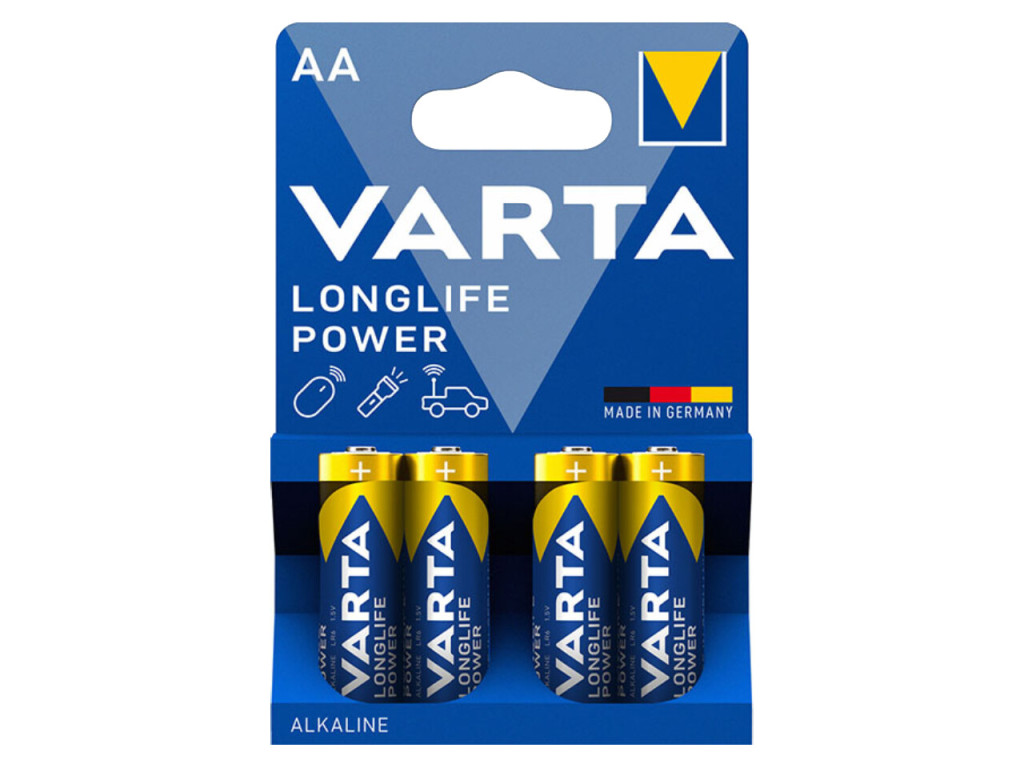 Kulcsszavak: Varta AA elem, Varta Longlife Power, AA alkáli elem, LR6 elem, Varta ceruzaelem, Varta elem 4 db.