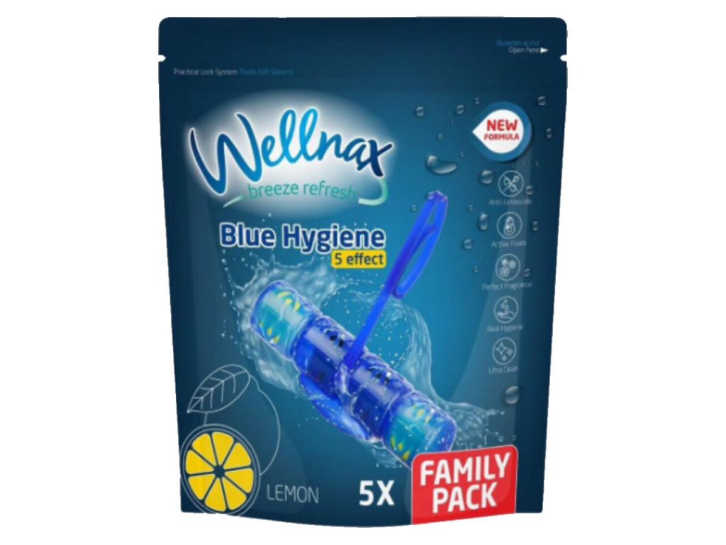 Wellnax Breeze Refresh Blue Hygiene Lemon Family Pack terméket, ha folyamatos tisztaságot, látható higiéniát és friss, citrusos illatot szeretnél biztosítani a mellékhelyiségben.
